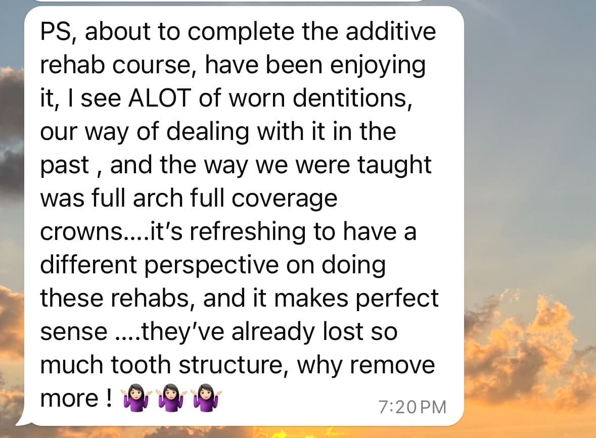 I was inspired by Sam’s work and completed his course with the first cohort. Comprehensive and simplified approach into tackling complex aesthetic cases and meeting patients expectations. Sam is a great teacher and mentor. Since then few of my colleagues have completed and we all say the same thing…it’s a game changer!